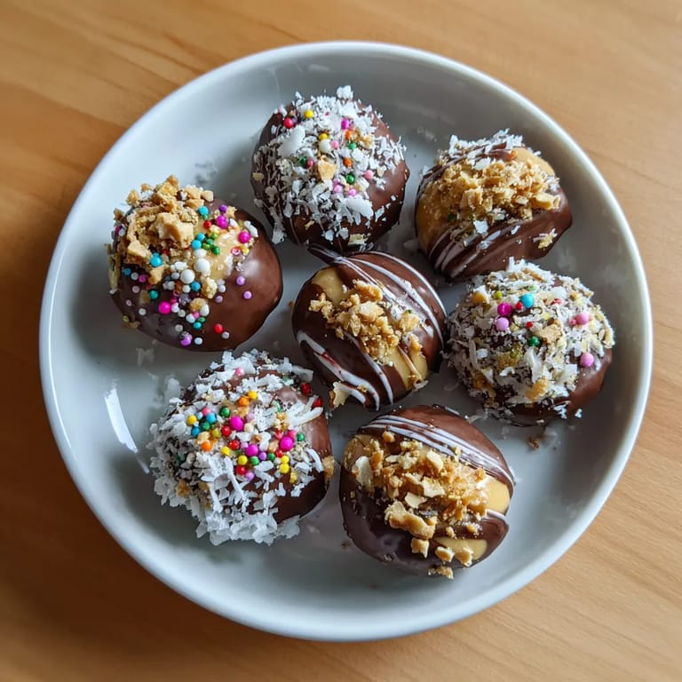 - Saupoudrer immédiatement chaque bouchée de noix concassées noix de coco râpée ou vermicelles colorés avant que le chocolat ne durcisse Cela aidera aussi à fixer les toppings