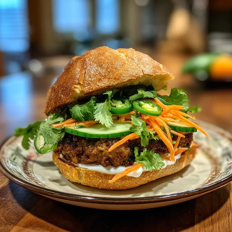 Épingler Ce burger Banh Mi est né de mon envie irrésistible d’unir l’intensité des burgers américains à la fraîcheur composée d’herbes et de légumes marinés du célèbre sandwich vietnamien. Le résultat est une explosion de saveurs et de textures, parfaitement adaptée à un repas convivial ou à une soirée de cuisine décontractée à la maison.