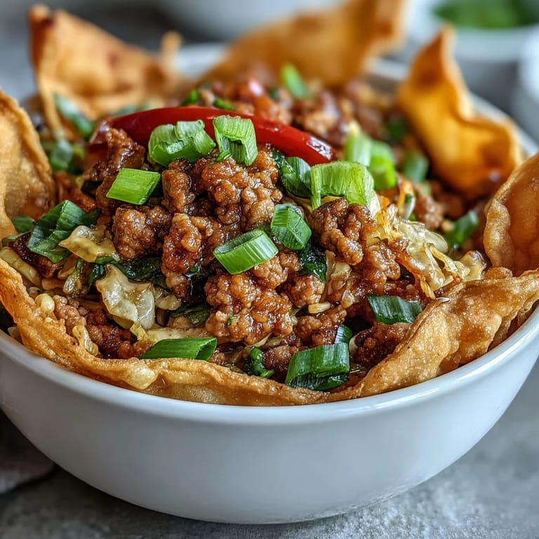 - 1 tasse (30 g) de lamelles de wonton croustillantes: Le contraste textural final