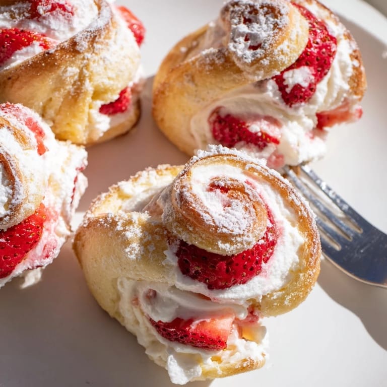 Épingler Ces roulés de brioche à la fraise sont un doux mélange de brioche moelleuse, de garniture crémeuse et de fraises fraîches, parfaits pour le petit-déjeuner ou un dessert gourmand.