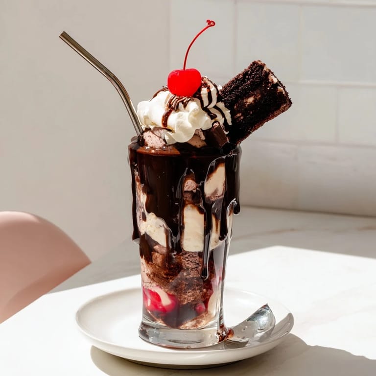 Épingler Un dessert-boisson festif et fantaisiste inspiré du célèbre bûche de Noël française, alliant chocolat, vanille et cerise dans une version pétillante irrésistible.