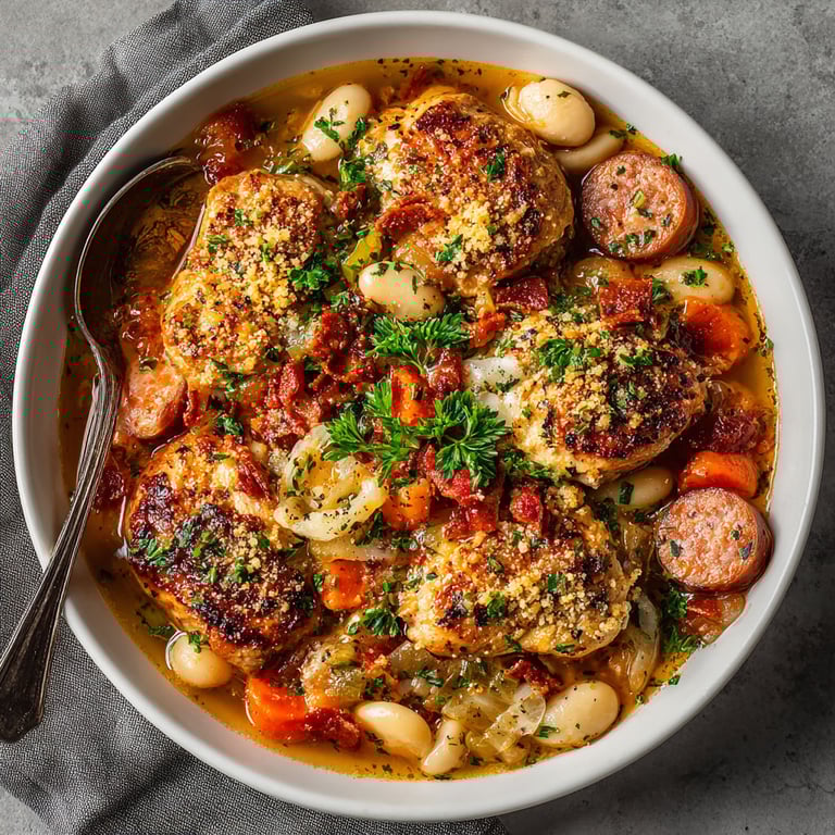 Épingler Le cassoulet express est la solution idéale pour un repas familial copieux sans y passer des heures. Cette version moderne réunit haricots blancs fondants, saucisse fumée et morceaux de poulet tendre mijotés ensemble dans une seule marmite, pour un plat riche en saveurs et facile à préparer, même en semaine.