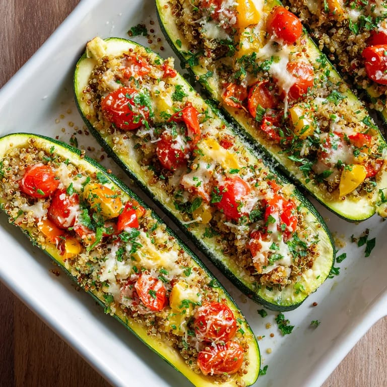Épingler Ces courgettes farcies façon méditerranéenne sont parmi mes plats végétariens préférés pour un dîner gourmand et coloré. Les courgettes sont garnies d’un mélange savoureux de quinoa, de légumes fondants et de fromage coulant pour un repas léger et réconfortant qui plaît à toute la famille.
