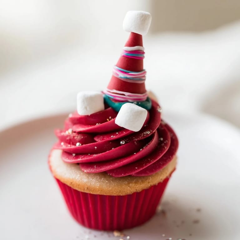 - Placez un chapeau d'elfe sur chaque cupcake glacé en appuyant délicatement pour fixer.