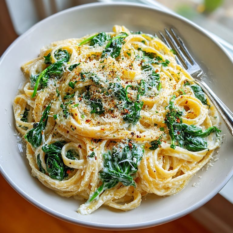Épingler Voici comment préparer des Fettuccine Alfredo légers aux épinards, une variante savoureuse et moins riche du classique italien. Cette recette combine la texture crémeuse recherchée avec la fraîcheur des épinards et la légèreté du yaourt grec, idéale pour un dîner convivial et rapide.