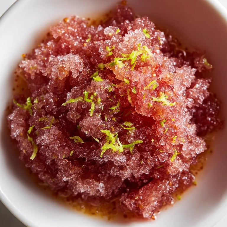 Jai découvert cette granita en cherchant une alternative légère aux glaces crémeuses classiques et elle est rapidement devenue une tradition estivale chez nous à la demande de mes amis après chaque barbecue