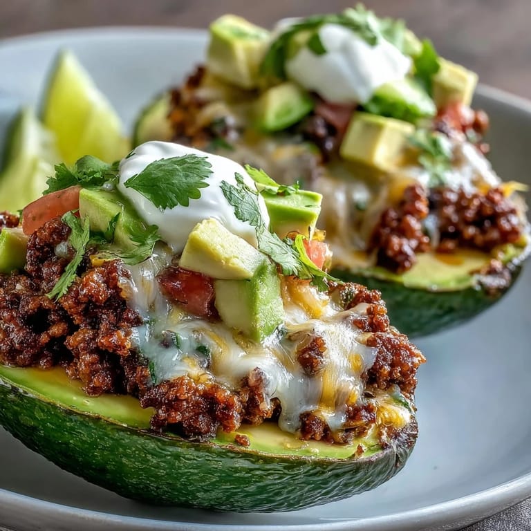 Épingler Un soir, j'ai ouvert mon réfrigérateur en cherchant quelque chose de rapide et satisfaisant, et mon regard s'est posé sur deux avocats bien mûrs qui m'attendaient patiemment. C'est là qu'une idée m'a traversé l'esprit : pourquoi ne pas les transformer en petit récipient pour mes tacos préférés ? Quelques minutes plus tard, avec du bœuf haché encore chaud parsemé d'épices, j'ai créé ce plat qui mélange la richesse crémeuse de l'avocat avec les saveurs audacieuses des tacos mexicains. Ce moment improvisé à la cuisine est devenu l'une de mes façons favorites de manger sainement sans sacrifier le goût.