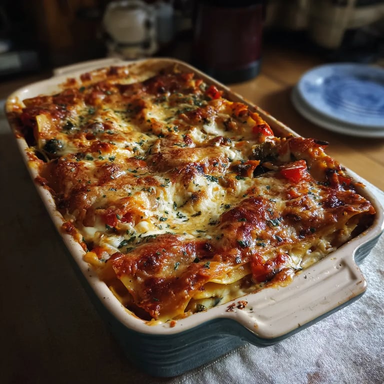 La lasagne est un plat traditionnel italien composé de couches successives de pâtes de légumes et de sauce. Chaque région d’Italie revisite la recette selon ses produits locaux et l’ajout des légumes rôtis est une belle adaptation méditerranéenne très appréciée aujourd’hui.