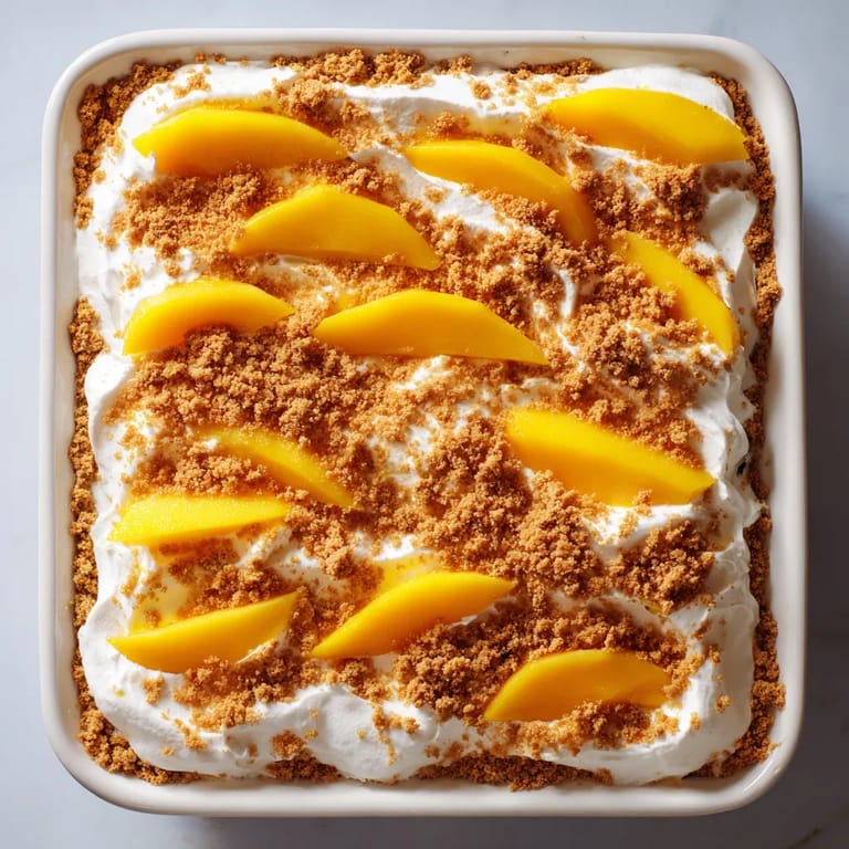 - Découpez des parts généreuses à l’aide d’un couteau bien aiguisé servez bien frais directement depuis le plat le contraste entre la crème mousseuse et les mangues fondantes est irrésistible