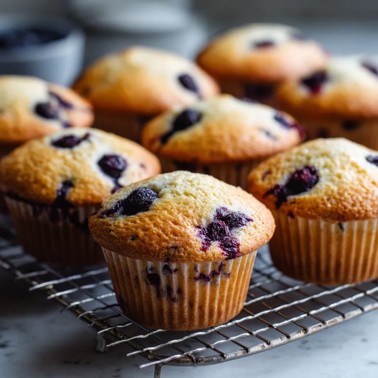 Pâtisseries moelleuses parfumées au citron et garnies de myrtilles juteuses, idéales pour commencer la journée en douceur.