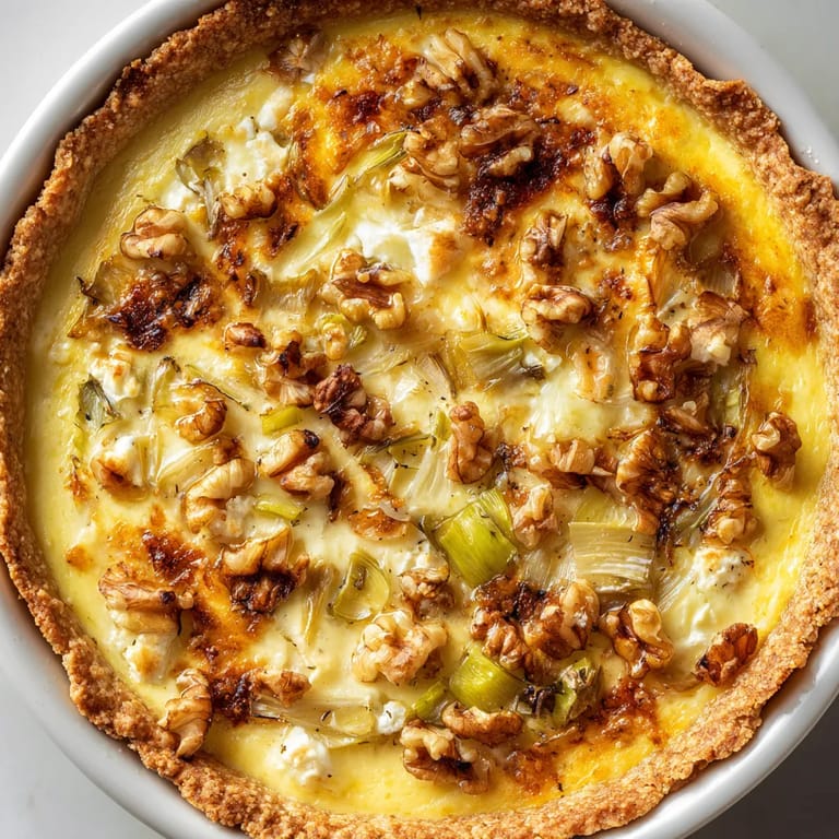 La quiche vient de la région Lorraine mais on l’adapte facilement en variant les garnitures Cette version avec poireaux chèvre et noix rappelle les terroirs du sud-ouest et des régions rurales où ces produits sont rois C’est une ode à la simplicité rustique et au partage