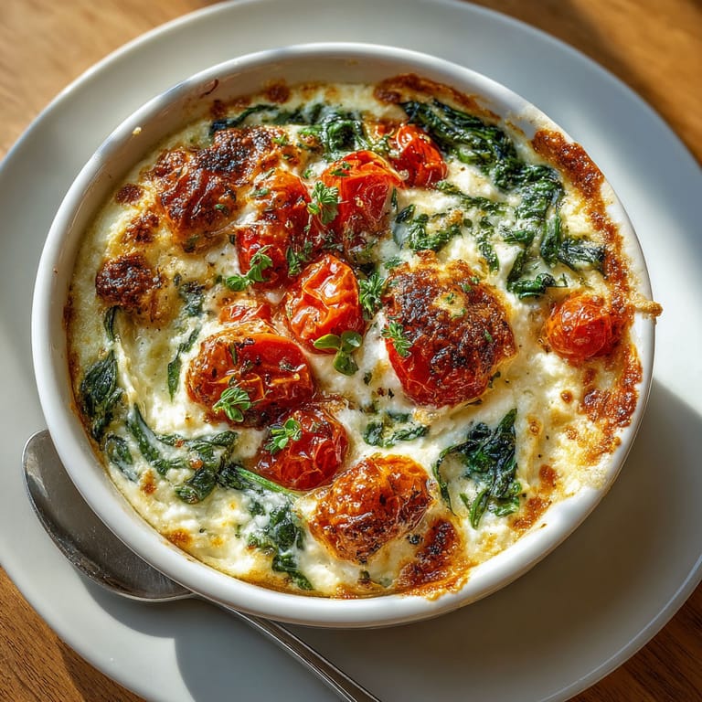 Épingler Ce gratin de ricotta, épinards et tomates incarne le plaisir d'un plat végétarien savoureux, simple et réconfortant, parfait en accompagnement pour un repas convivial ou en entrée légère lors d'un déjeuner estival. En 35 minutes, vous obtenez une préparation onctueuse et dorée, délicieuse avec du pain croustillant.