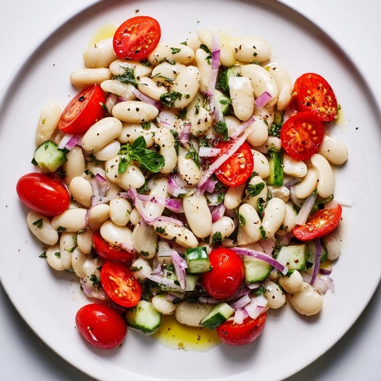 The beauty of this salad is how easily it welcomes additions without losing its identity. Add a handful of arugula or spinach for extra greens and a slight peppery note, or toss in some diced bell pepper if you want sweetness and crunch. I've made it with navy beans when cannellini weren't available and honestly couldn't tell the difference—great northern beans work too if that's what you have. The herbs are suggestions, not commands; if you love cilantro more than parsley, make that swap with confidence. This is a salad that invites experimentation while staying true to its Mediterranean roots.