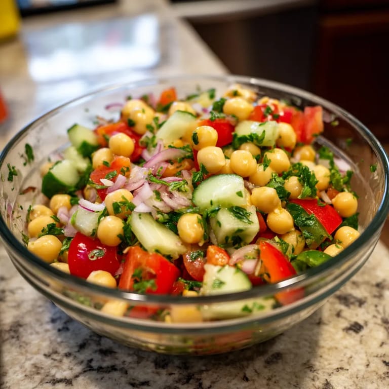 Épingler Cette salade de pois chiches express est ma solution préférée pour les journées chaudes où l'envie de cuisiner est au plus bas. Fraîche, colorée et nourrissante, elle se prépare en un clin d'œil tout en offrant une explosion de saveurs méditerranéennes.