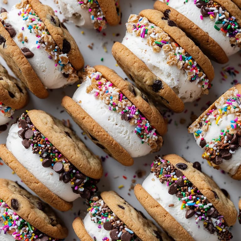 - Roulez délicatement le sandwich dans vos garnitures préférées pépites de chocolat vermicelles ou noix ce geste se fait rapidement pour éviter que la glace ne fonde