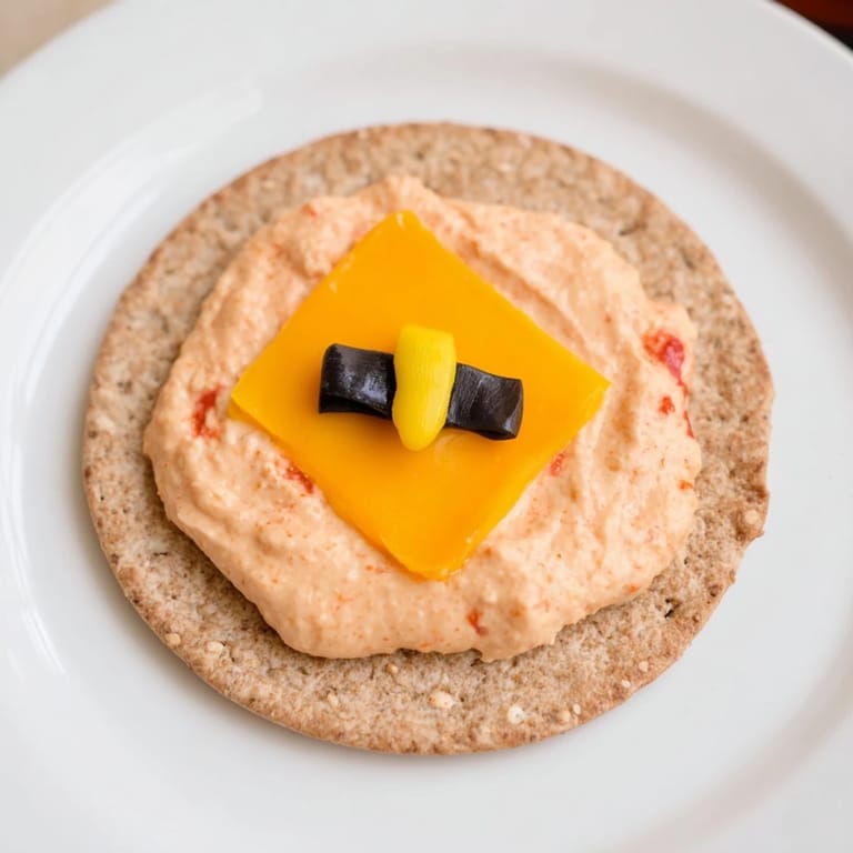- Déposer ou pocher une cuillerée de dip au centre de chaque cracker au fromage.