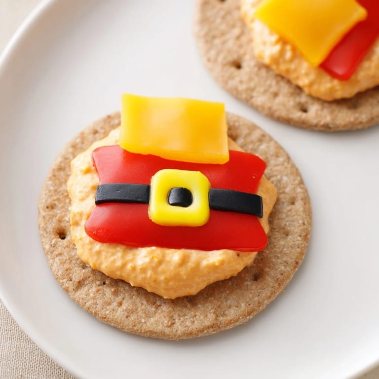 Épingler Festif et amusant, ces crackers au fromage savoureux sont garnis d'un dip crémeux au poivron rouge rôti et décorés pour ressembler à la ceinture emblématique du Père Noël — parfaits pour les réunions de vacances.