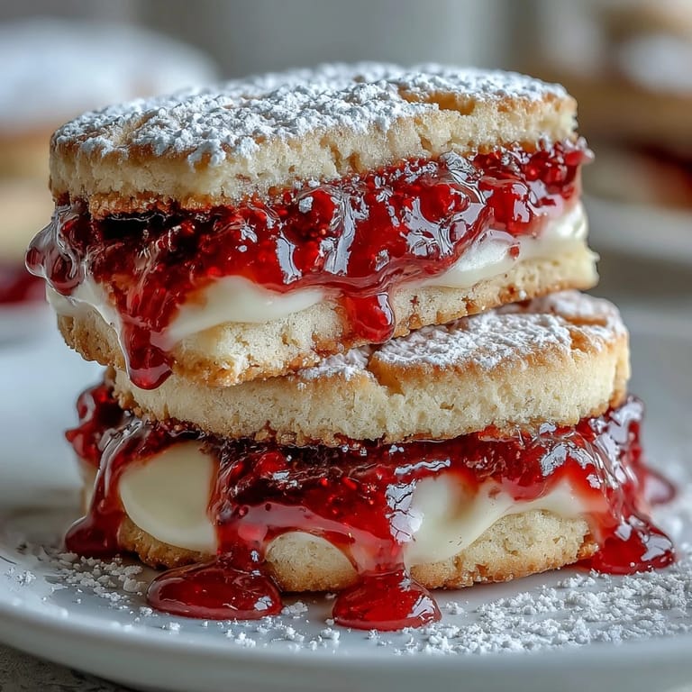 Épingler Un après-midi pluvieux, j'ai découvert ces petits sablés lors d'une visite dans une pâtisserie de village anglais. La crème fraîche épaisse mélangée au beurre créait une texture si délicate que j'ai immédiatement demandé la recette au pâtissier. Il m'a confié son secret avec un sourire complice : ne jamais surtravailler la pâte. Depuis, ces petits sandwichs à la framboise sont devenus ma spécialité préférée pour les goûters en fin d'après-midi.