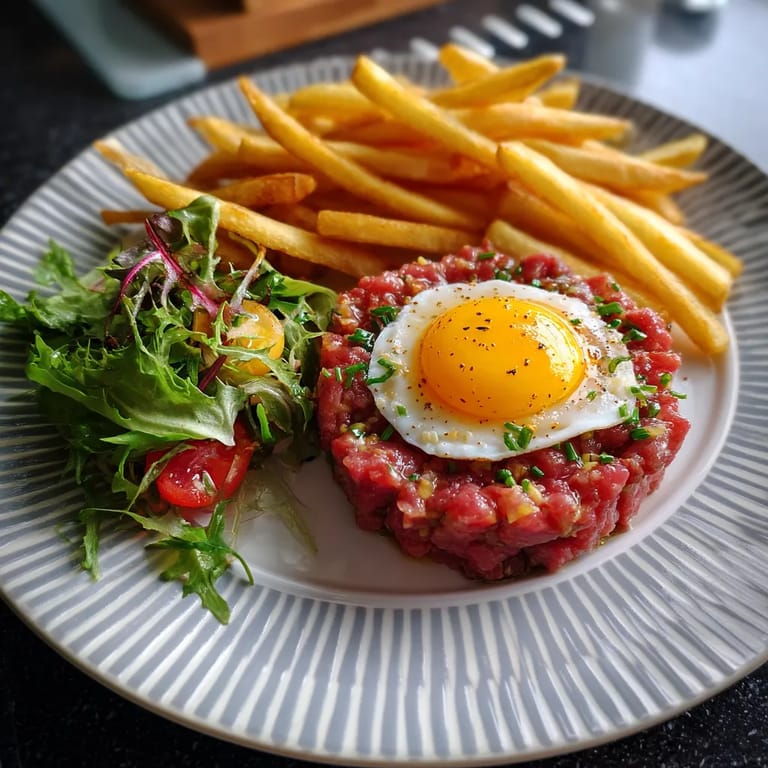 J'ai découvert cette recette lors d'un séjour à Paris et elle est devenue mon plat signature quand je reçois des amis. La première fois que je l'ai préparée pour ma famille, même les plus réticents à la viande crue ont été conquis par sa fraîcheur et son goût raffiné.