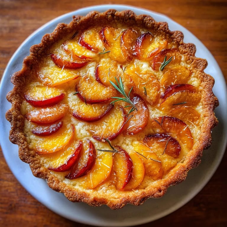 Cette tarte évoque pour moi les tables estivales du sud de la France. Le romarin est une herbe reine en Provence et il sublime toujours les fruits de l’été. Un vrai voyage provençal dans chaque bouchée.