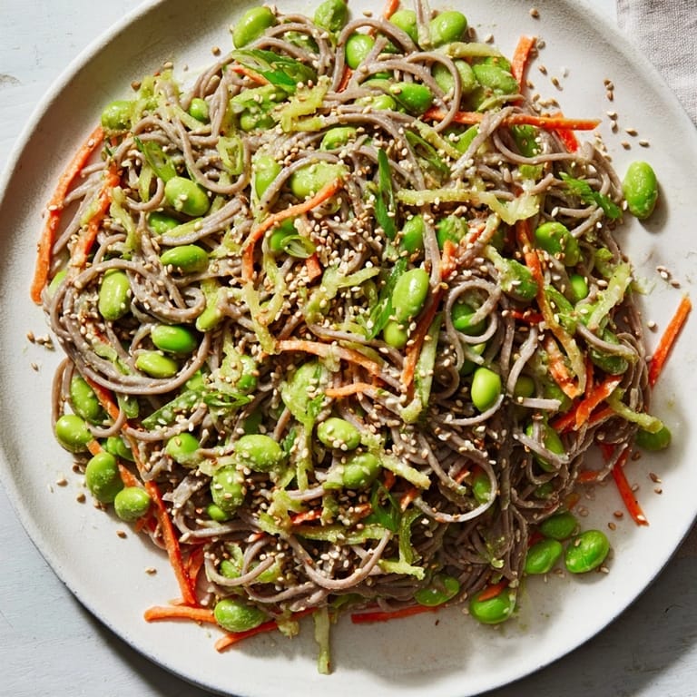 Épingler I discovered this salad on a sweltering afternoon when my fridge felt emptier than my appetite. There were noodles waiting, a bag of edamame, and some vegetables that needed rescuing. I threw together a tahini-based dressing on instinct, tossed everything together, and suddenly had something so bright and satisfying that it became my summer staple. The balance of nutty sesame against crisp vegetables felt almost accidental, but it stuck around.