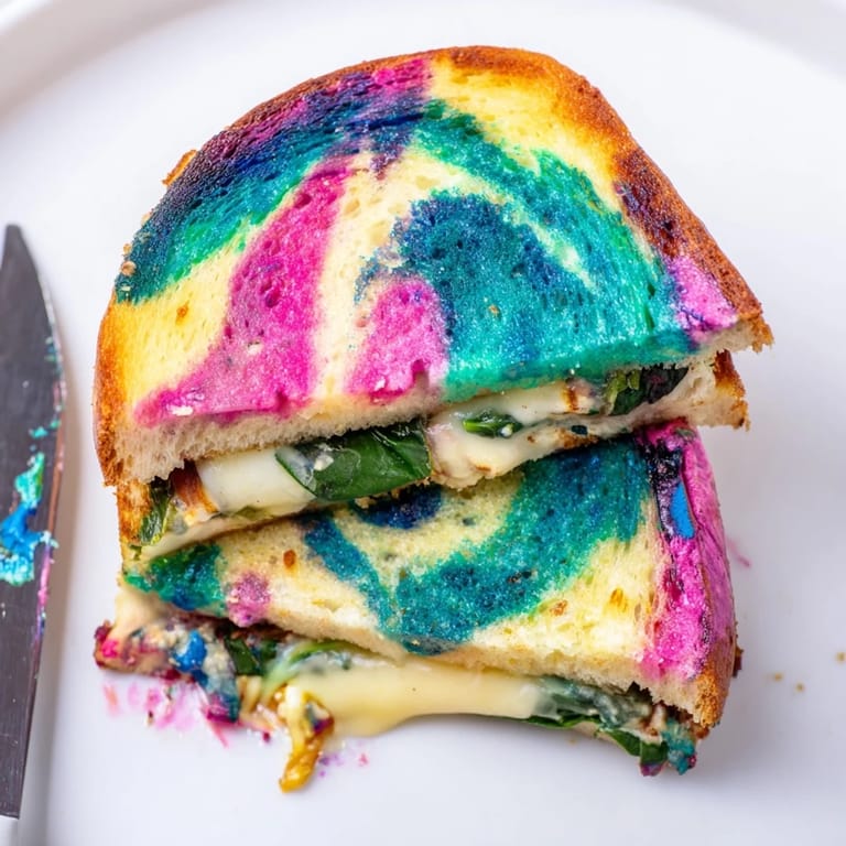Épingler Un sandwich au fromage grillé revisité, avec des fromages et du pain naturellement colorés pour un effet éclatant et un goût délicieux.
