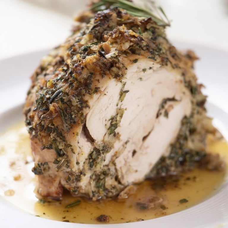 Assurez-vous que le mélange d'herbes et beurre couvre uniformément la volaille. La cuisson lente à 180°C permet de développer une croûte dorée sans brûler.