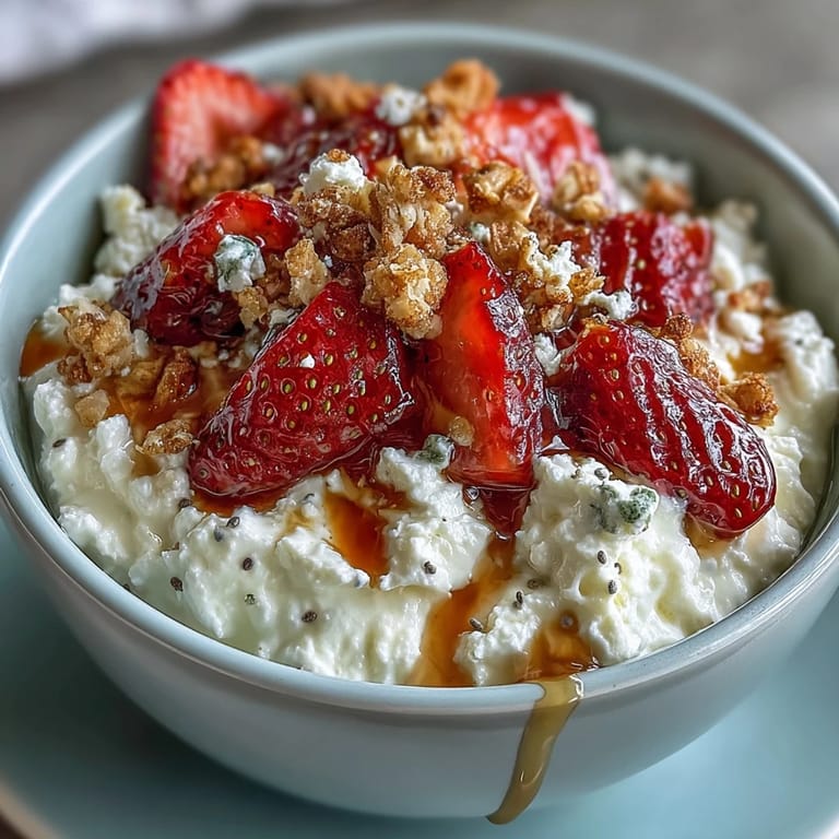 The beauty of this breakfast bowl lies in its simplicity and versatility. Cottage cheese serves as a creamy, protein-rich base that pairs beautifully with the bright, juicy flavor of fresh strawberries. The granola adds that essential crunch and a touch of wholesome sweetness, while optional chia seeds contribute extra fiber and omega-3s. A drizzle of honey or maple syrup brings everything together with natural sweetness. This is comfort food that actually nourishes your body, proving that healthy eating doesn't have to be complicated or boring.