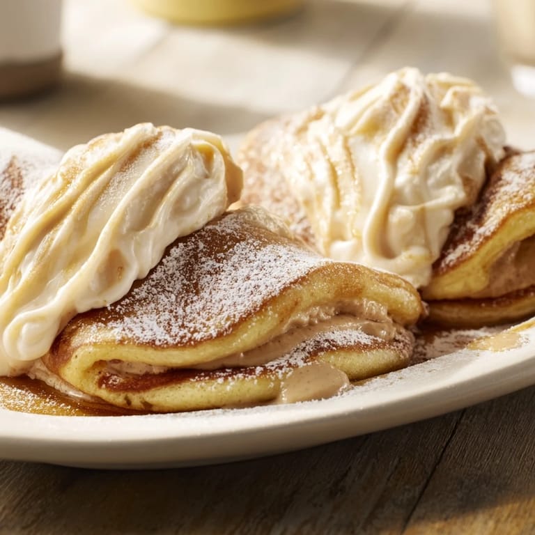 Épingler Des pancakes moelleux remplis de crème de marron sucrée, parfaits pour un petit déjeuner ou un dessert rapide et gourmand.