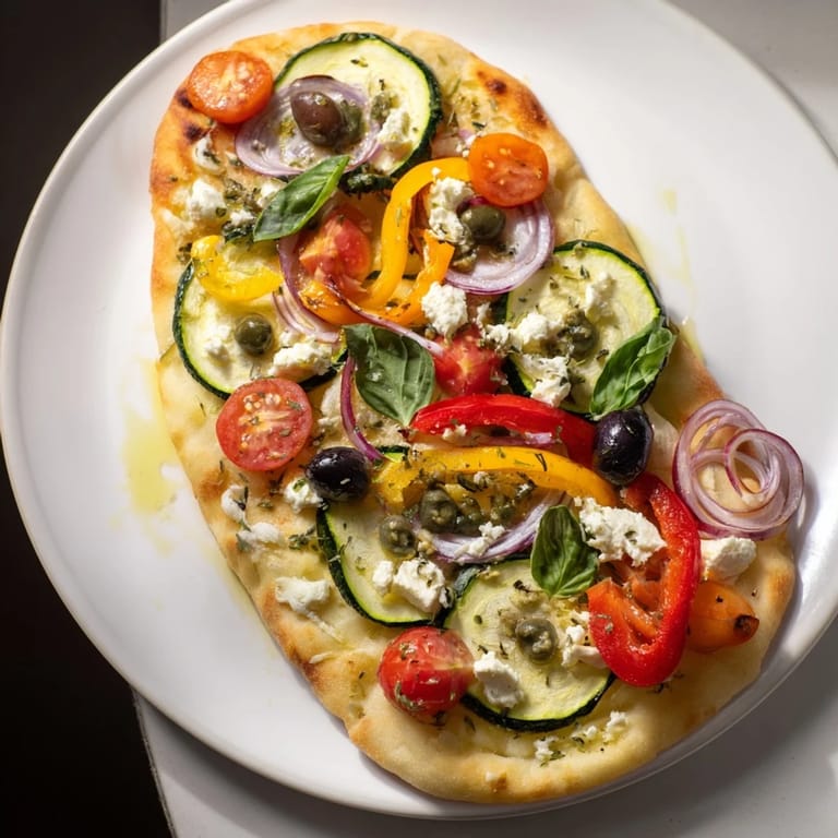Épingler Un pain plat coloré et parfumé, garni de légumes méditerranéens et herbes, inspiré par les saveurs de la Provence.