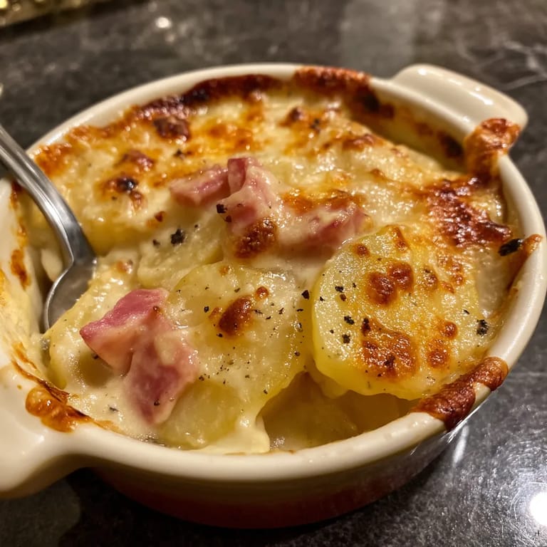 N’hésitez pas à personnaliser ce gratin selon vos envies ou vos restes. Vous pouvez remplacer le jambon par du poulet cuit émincé ou même le supprimer pour une version végétarienne en ajoutant des champignons poêlés. Les pommes de terre peuvent aussi être remplacées partiellement par des patates douces pour une touche sucrée intéressante.