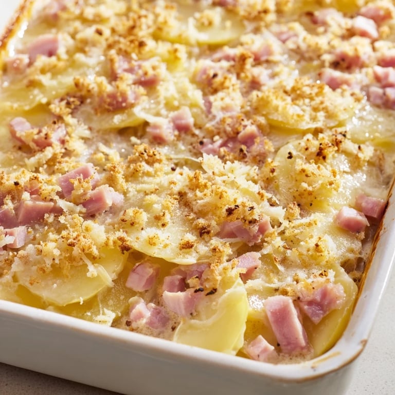 La première fois que j'ai préparé ce gratin, j'ai été surpris par l'équilibre parfait entre le fondant des pommes de terre et le parfum délicat du jambon. Depuis, il est souvent au centre de nos repas partagés, et il suscite toujours des sourires.