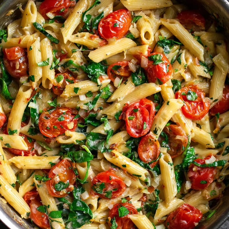 Épingler Ce plat de pâtes crémeux tomates et basilic est mon arme secrète pour les soirs où je veux quelque chose de délicieux sans une montagne de vaisselle. Tous les ingrédients mijotent dans une même casserole pour une sauce veloutée infusée de basilic frais et relevée par la douceur des tomates mûres.