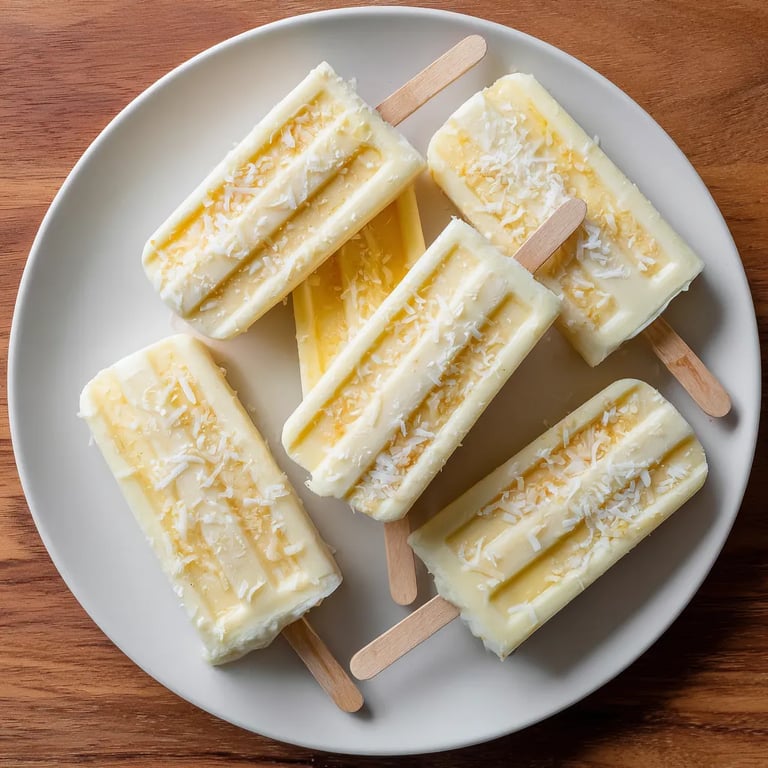 Alliance tropicale d'ananas et noix de coco en bâtonnets glacés onctueux et rafraîchissants, parfaits l'été.