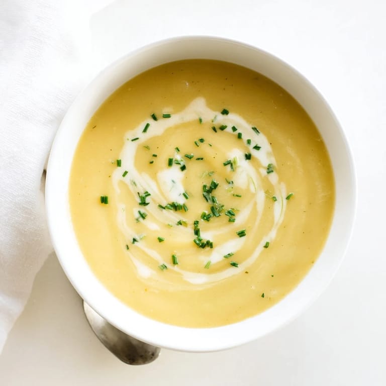 Épingler Une soupe classique et veloutée mélangeant des pommes de terre tendres et des poireaux doux pour un repas réconfortant et savoureux, parfait pour toutes les saisons.