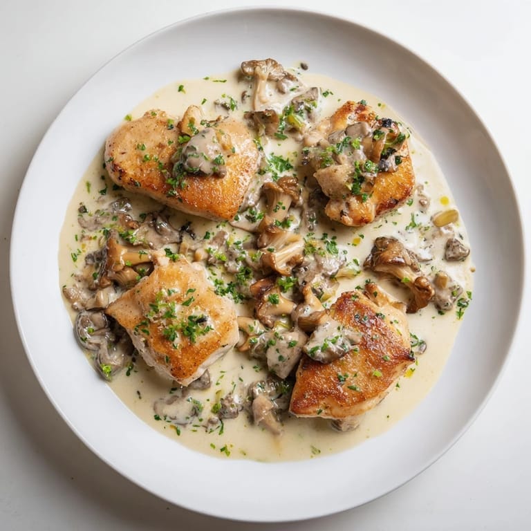 La première fois que j'ai servi ce poulet à la crème revisité, ma famille a été séduite par l'arôme subtil des herbes sauvages et la douceur de la sauce. Les champignons des bois ajoutent une touche rustique très appréciée.