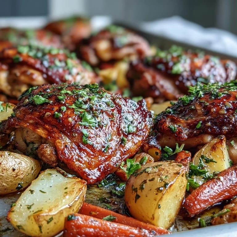 Épingler Un mardi soir de novembre, j'ai ouvert le frigo et trouvé des cuisses de poulet, des pommes de terre et des carottes qui attendaient patiemment. Pas d'inspiration, juste de la fatigue. J'ai saupoudré tout ça d'assaisonnement ranch, enfourné le plateau et attendu. Quarante minutes plus tard, la cuisine sentait le rôti doré et les herbes grillées. Ce soir-là, sans y penser, j'ai créé un repas qui est devenu mon refuge du mercredi.