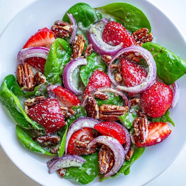 Épingler One afternoon in late May, I was rummaging through my fridge with that familiar grocery-day panic—too many greens, not enough inspiration. A box of strawberries caught my eye, still jewel-bright from the farmers market, and suddenly I remembered a salad my aunt made years ago that somehow turned spinach into something I actually craved. That day, I stopped overthinking and just started layering flavors: the sweetness of berries, the earthiness of fresh spinach, and a dressing that made everything sing. It became one of those recipes I keep coming back to, not because it's fancy, but because it tastes like relief in a bowl.