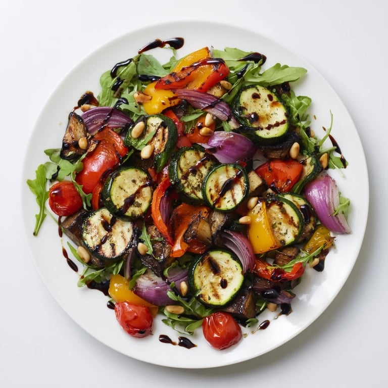 Épingler I discovered this salad on a late September afternoon when my garden was bursting with vegetables I'd planted months earlier. A friend was coming over, and I had too many zucchini and peppers sitting on the counter, so I threw them in the oven with oil and herbs, hoping for the best. What came out was warm, caramelized, and surprisingly elegant—nothing like the limp vegetable side dishes I'd made before. That one accidental meal became my go-to whenever I needed something that felt both nourishing and special.