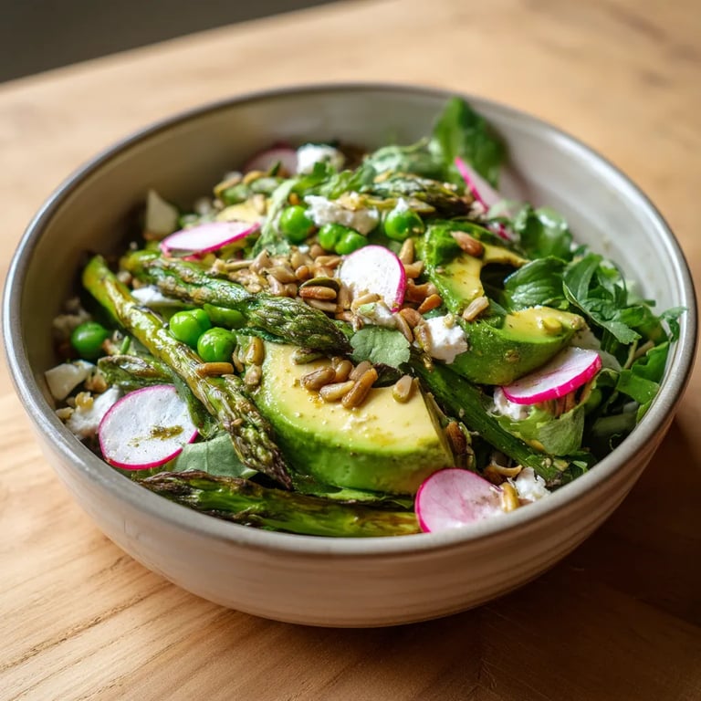 Épingler Cette salade de printemps aux asperges célèbre toute la fraîcheur et la délicatesse des premiers légumes de saison. J'ai créé cette recette pour mettre en valeur les asperges à leur meilleur moment, quand elles sont tendres et savoureuses.