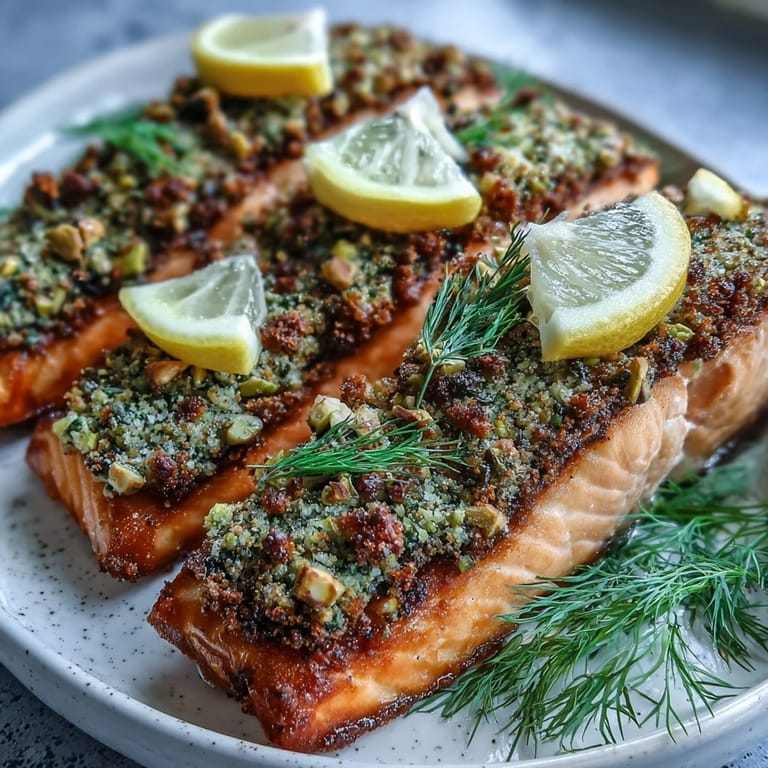 Épingler Un soir de semaine où je voulais impressionner mes invités sans passer des heures en cuisine, j'ai eu l'idée de ce saumon en croûte. Le crépitement des pistaches dans la poêle, cette odeur de citron et d'herbes fraîches qui emplit la cuisine, et ces couleurs vibrantes sur l'assiette, tout était parfait.