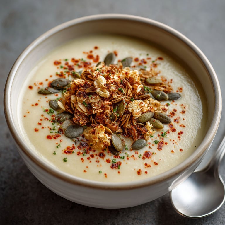 Épingler Ce velouté de panais et céleri rave est la solution idéale pour un repas réconfortant, subtil et original. Le granola salé apporte une touche croustillante et parfumée qui transforme chaque bol en un vrai plaisir de saison.