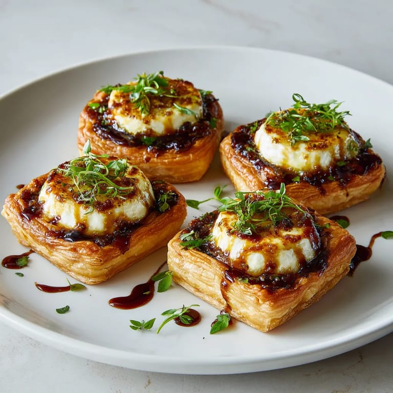 - Dès la sortie du four, versez un trait délicat de vinaigre balsamique sur chaque tartelette. Cette étape rehausse la saveur et apporte une jolie touche finale brillante.