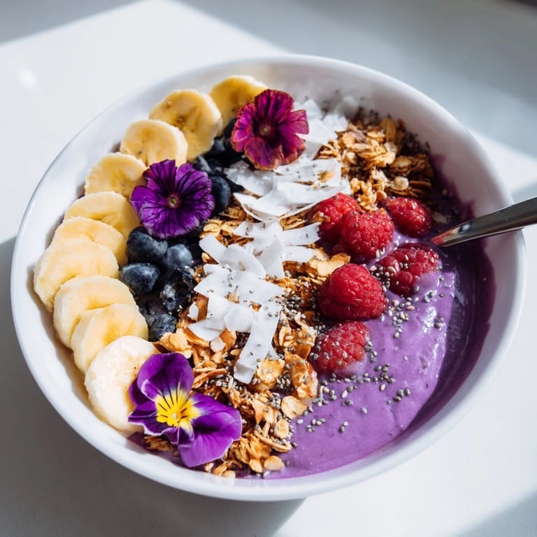 - Pour les toppings: Banane fraîche tranchée, noix de coco toastée, graines de chia, granola maison ou du commerce, fruits rouges frais, fleurs comestibles pour sublimer la présentation