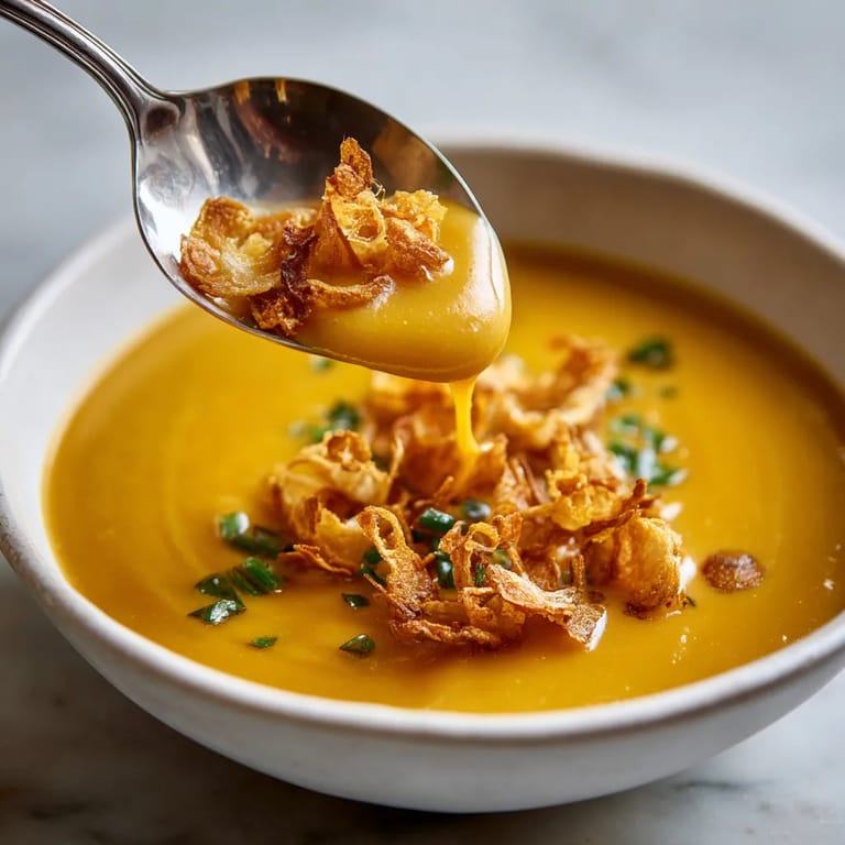 Épingler Ce velouté de butternut et châtaignes avec ses chips de poireau croquantes est la soupe réconfortante idéale pour illuminer les journées fraîches. Douce en bouche, joliment colorée et riche d’un mélange de saveurs automnales, cette recette transforme quelques ingrédients simples en un plat raffiné. Les chips de poireau ajoutent une touche de texture inattendue qui fait toute la différence à table.